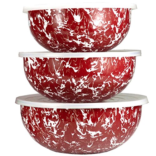Enamelware - Red Swirl Pattern - Set of 3 Mixing Bowls with Lids, hopefully can help you in buying the product.